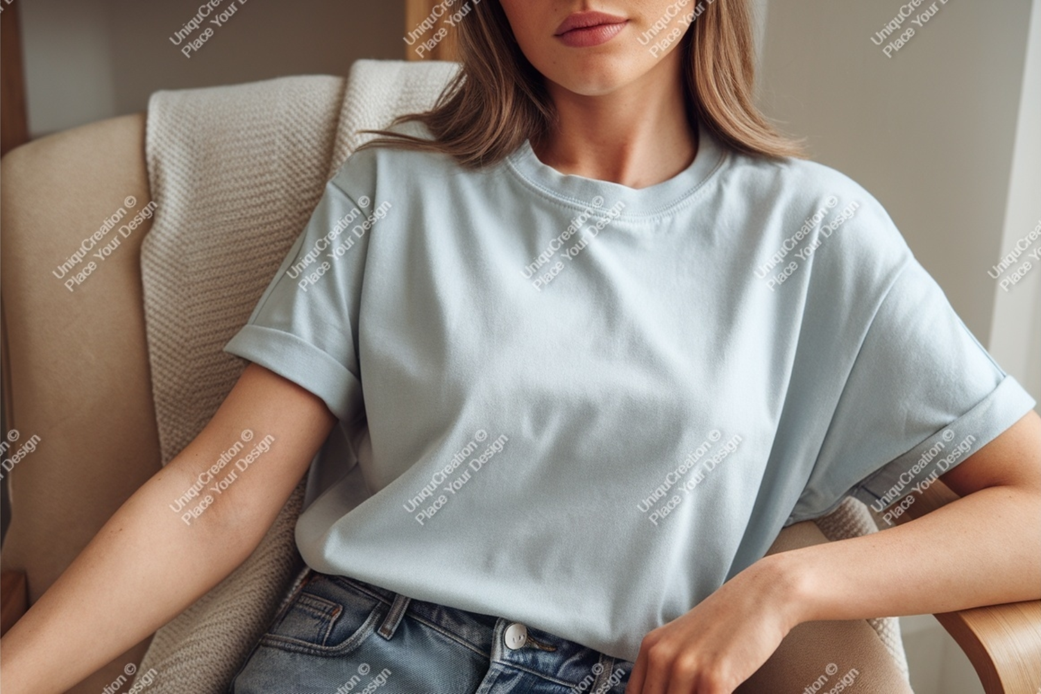 Fashion Style T-shirt Clothing Casual Woman Model Blue Portrait Indoor