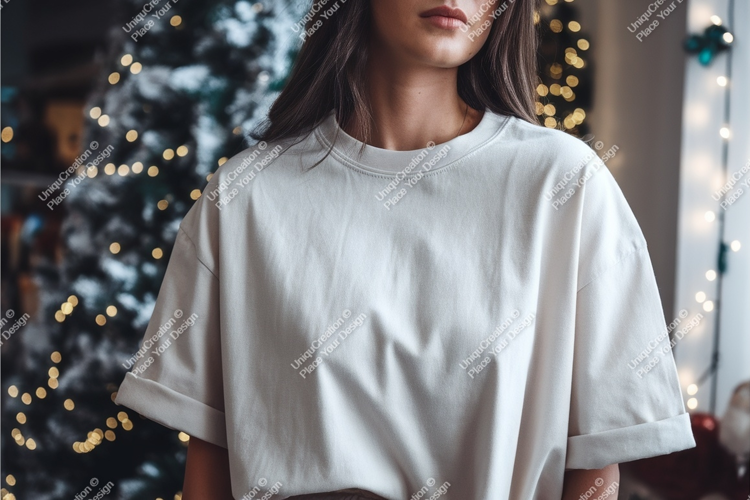 Cream T Shirt Mockup Festive Background
