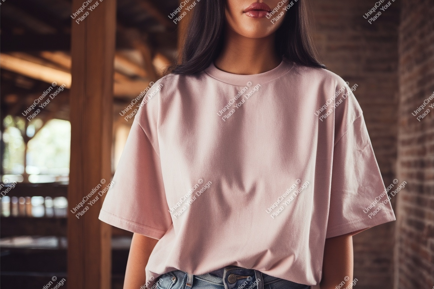 Fashion Style T-shirt Pink Clothing Casual Mockup Apparel Female Cotton