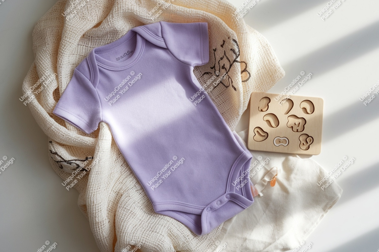 Similar Design Products to Purple baby bodysuit on blanket mockup