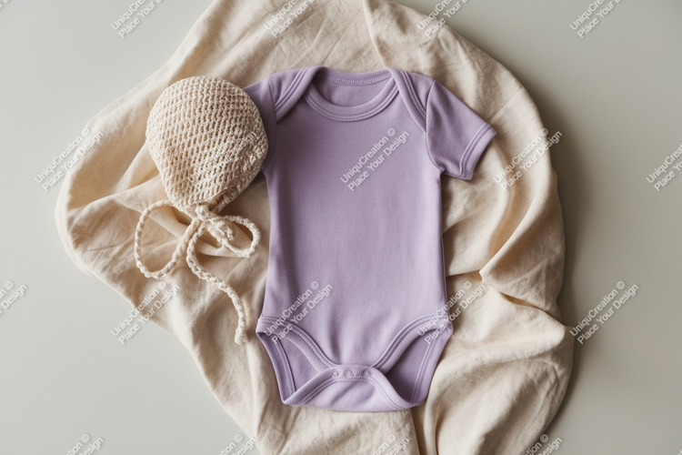 Baby Clothing Minimalist Mockup Apparel Fabric Purple Hat Neutral Bodysuit