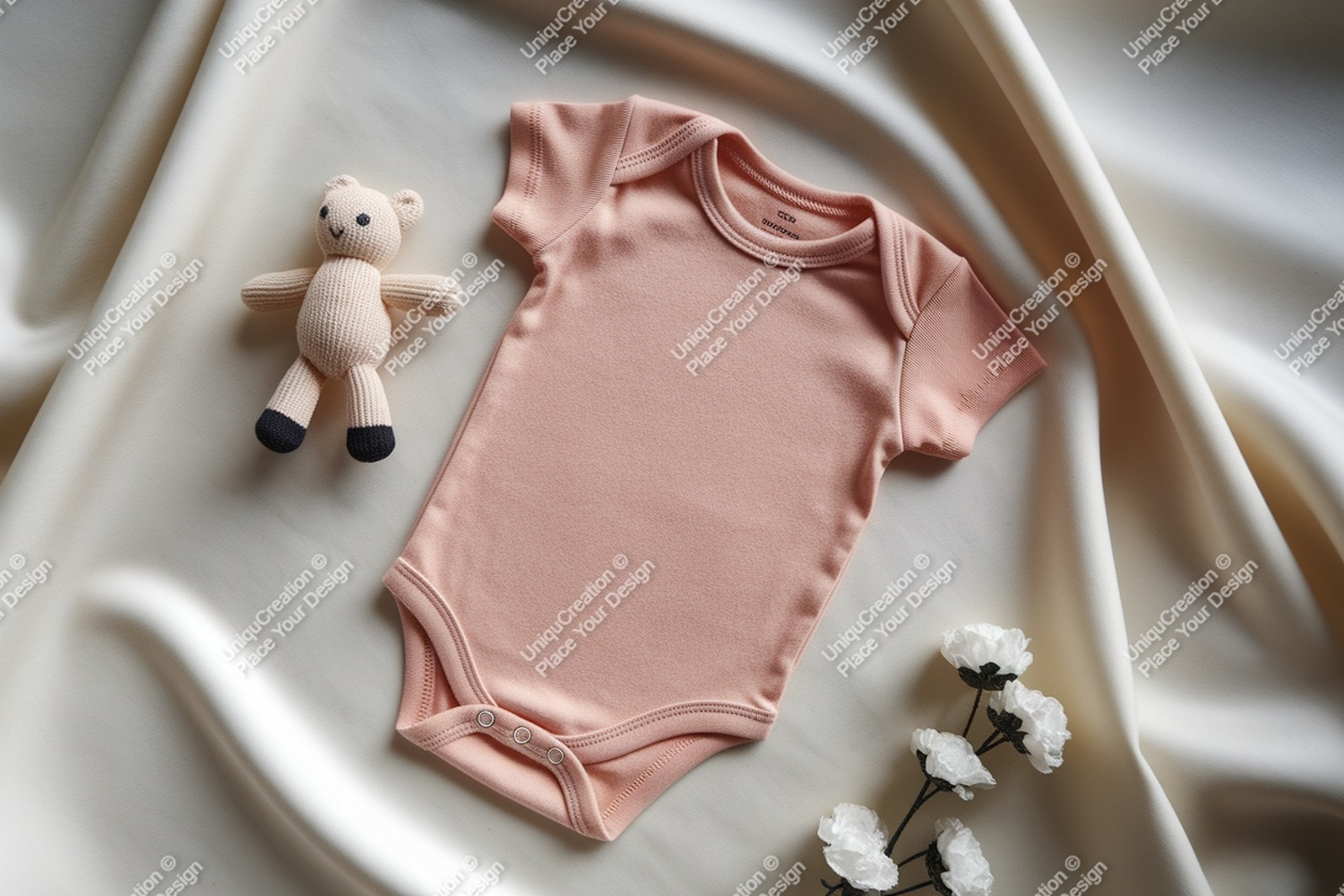 Similar Design Products to Soft baby onesie with teddy bear mockup