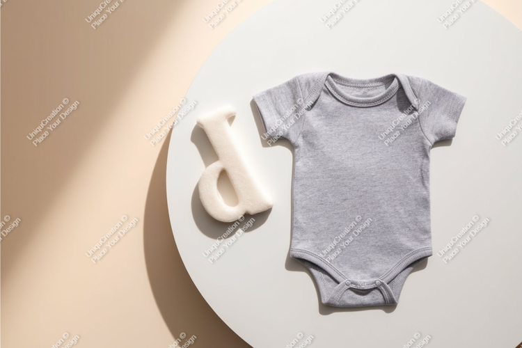 Gray baby onesie with letter d mockup
