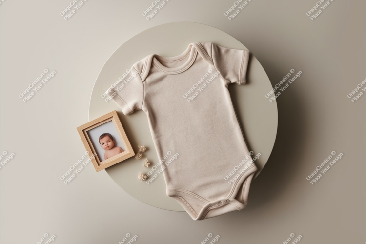 Baby Clothing Mockup Apparel Minimal Fabric Beige Neutral Infant Bodysuit
