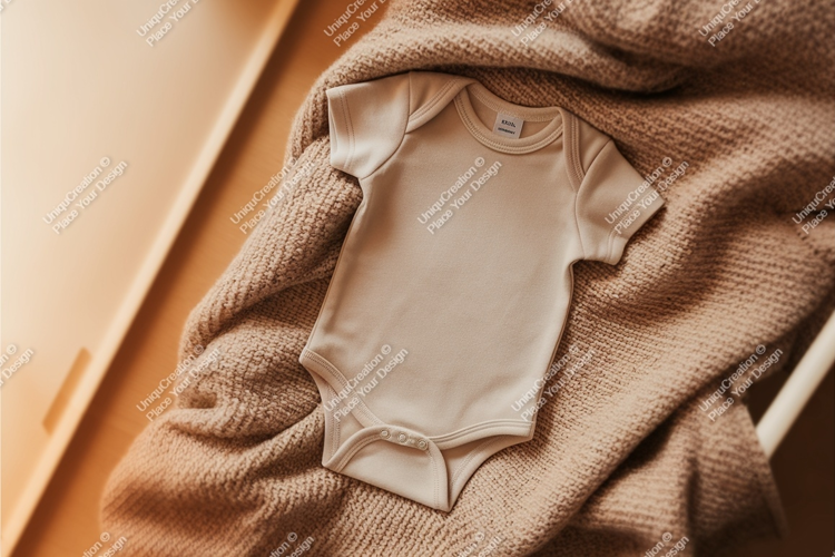 Similar Design Products to Beige baby bodysuit on blanket mockup