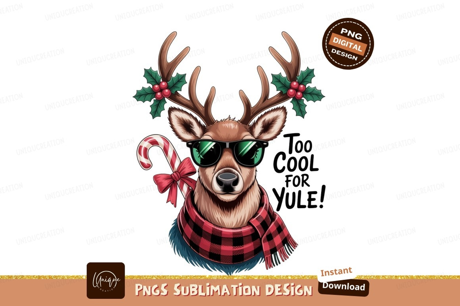 Cool reindeer with sunglasses and scarf antlers holly example image 1