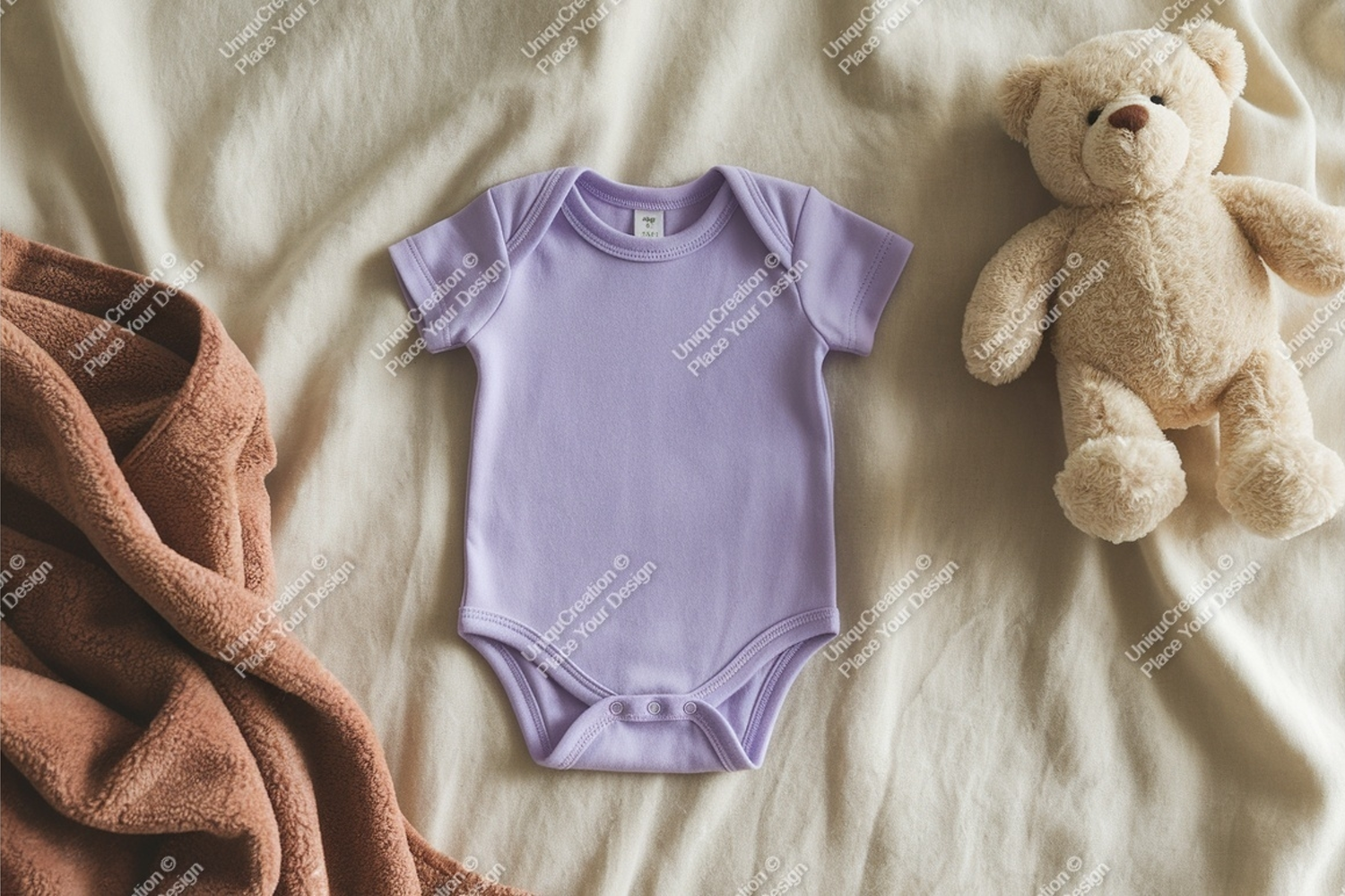 Baby Clothing Apparel Minimal Bear Lavender Fabric Teddy Cotton Bodysuit