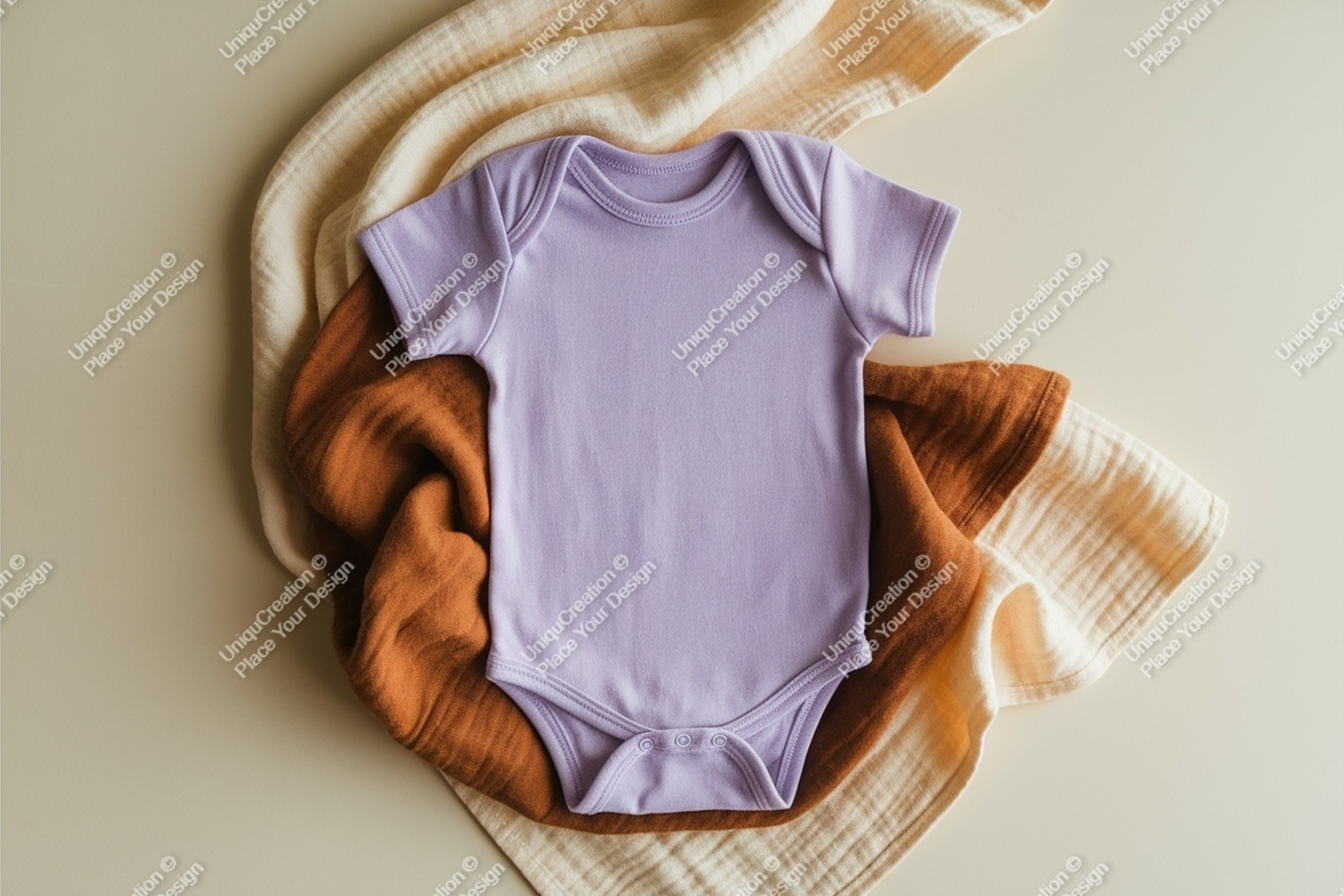 Similar Design Products to Lavender baby bodysuit on muslin mockup