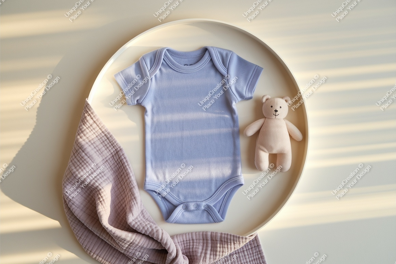 Similar Design Products to Baby blue bodysuit with teddy bear mockup