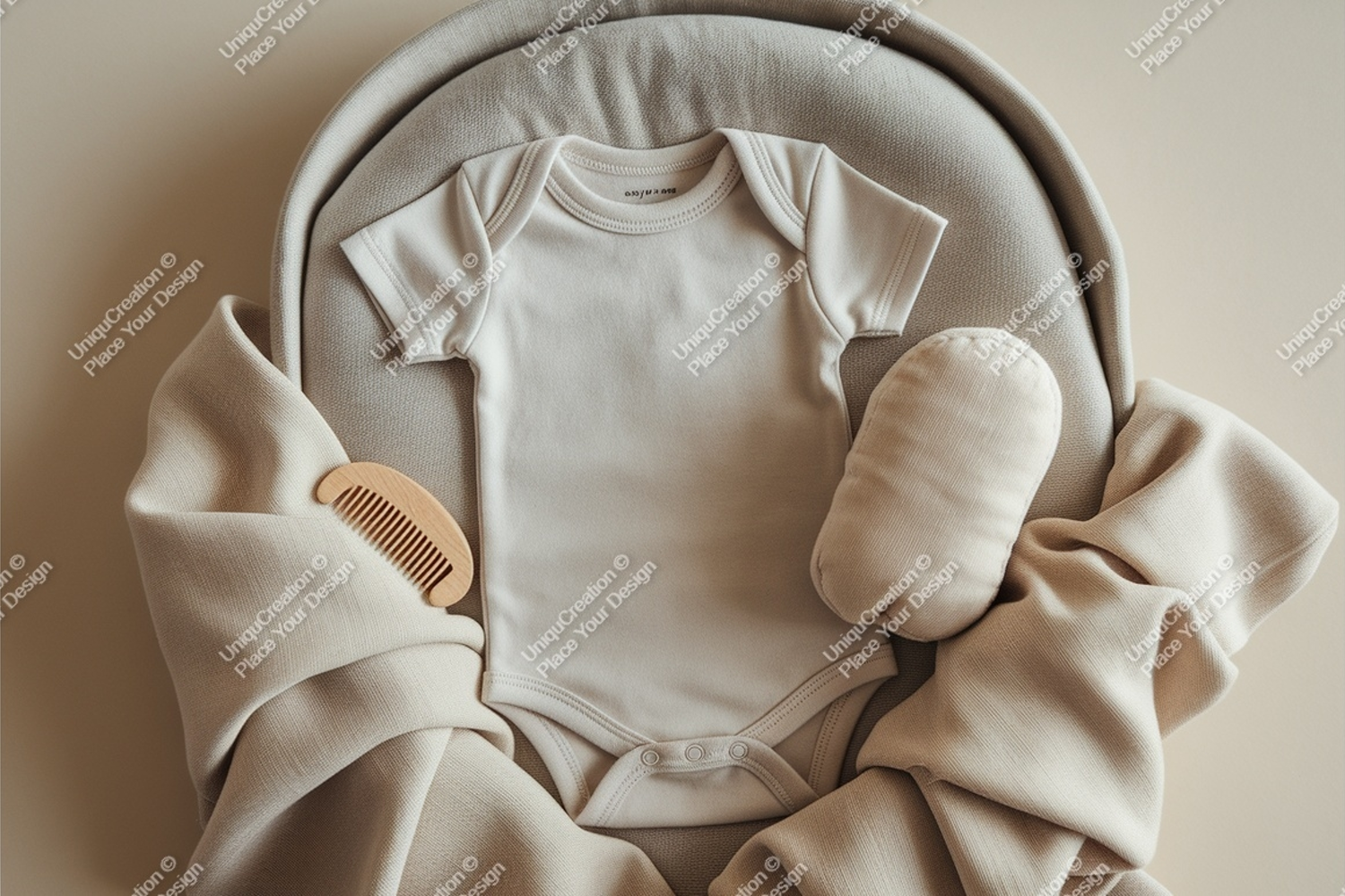 Similar Design Products to Neutral baby bodysuit with pillow and comb mockup