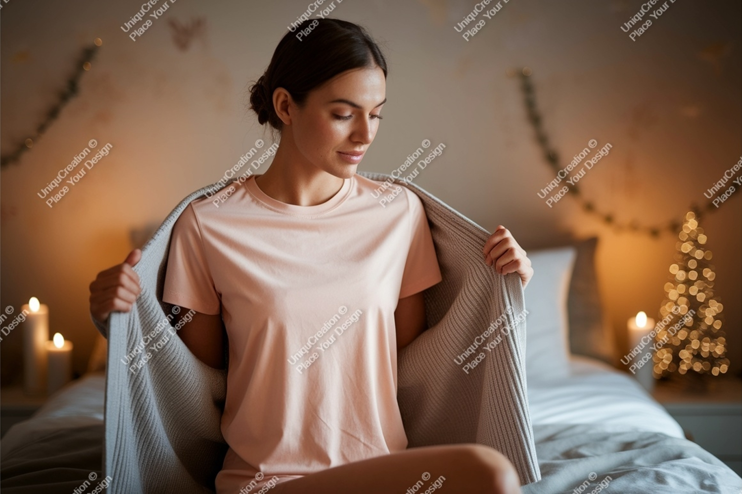 Shirt Pink Woman Warm Lights Blanket T Indoor Cozy Bedroom
