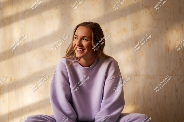 Light Casual Woman Lavender Young Wood Sitting Indoor Comfortable Sweatshirt
