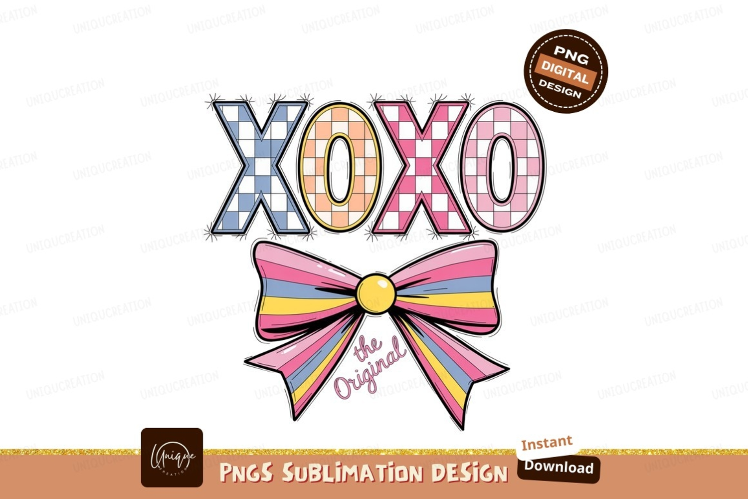 Xoxo Bow With Text pink blue example image 1