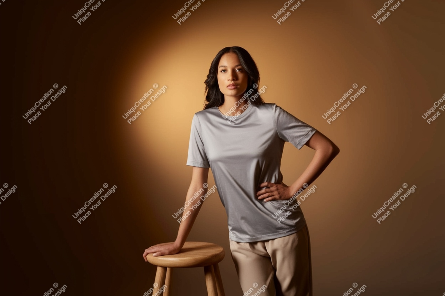 Fashion Style T-shirt Clothing Mockup Apparel Woman Studio Portrait Silver