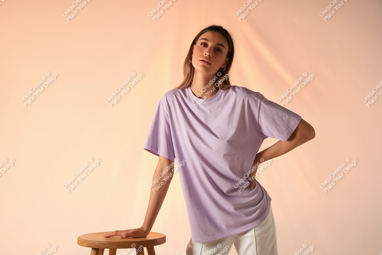 Woman wearing lavender t shirt mockup image