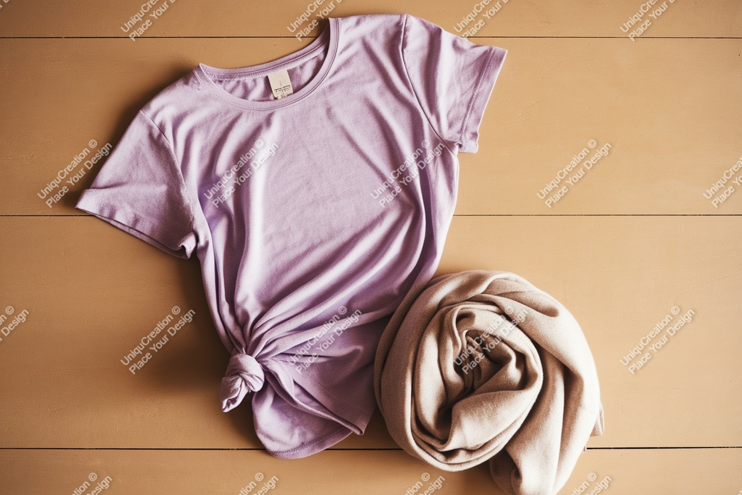 Similar Design Products to Lavender t shirt and beige scarf mockup image