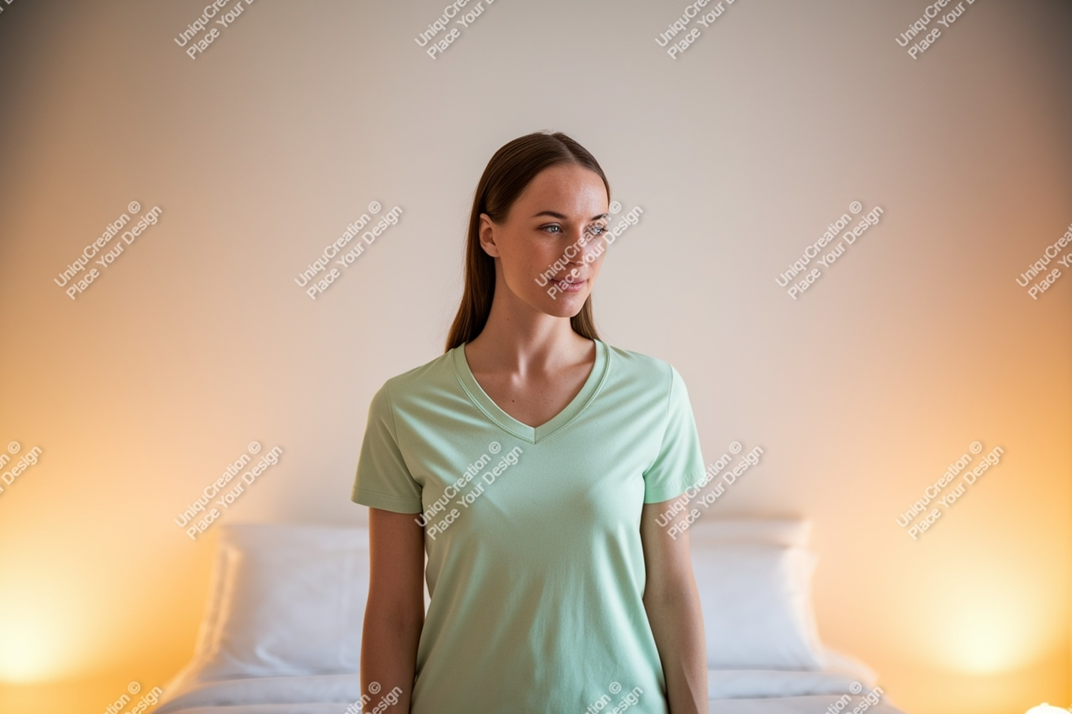 Similar Design Products to Woman wearing light green v-neck t-shirt apparel