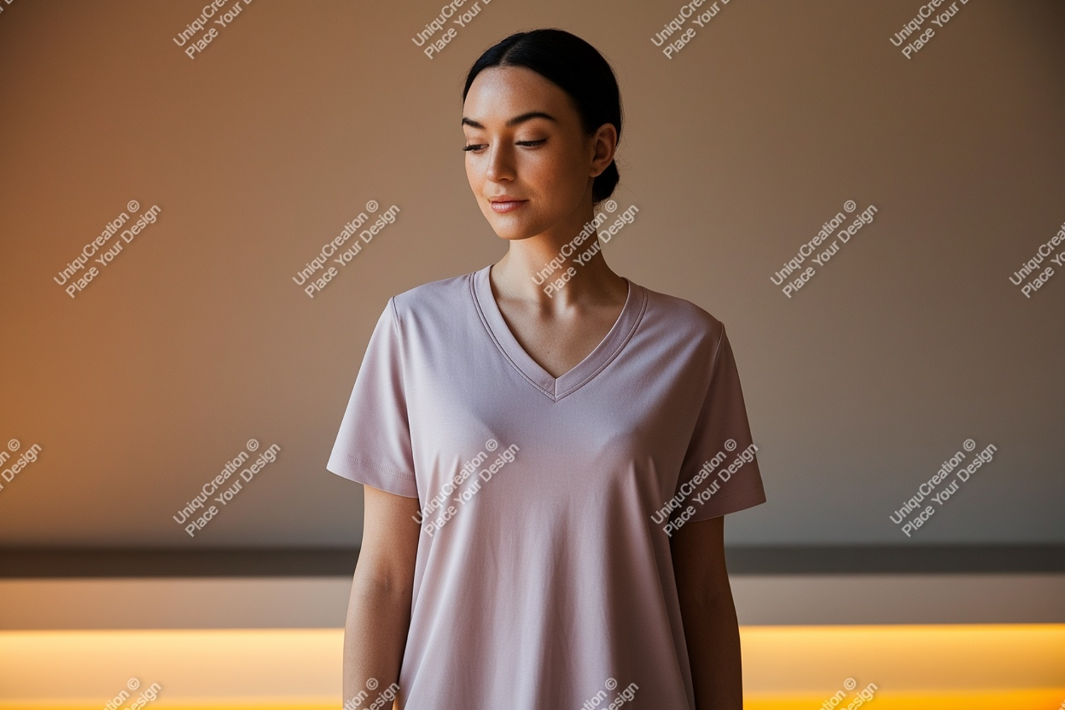 Fashion T-shirt Pink Clothing Casual Mockup Apparel Woman Studio V-neck