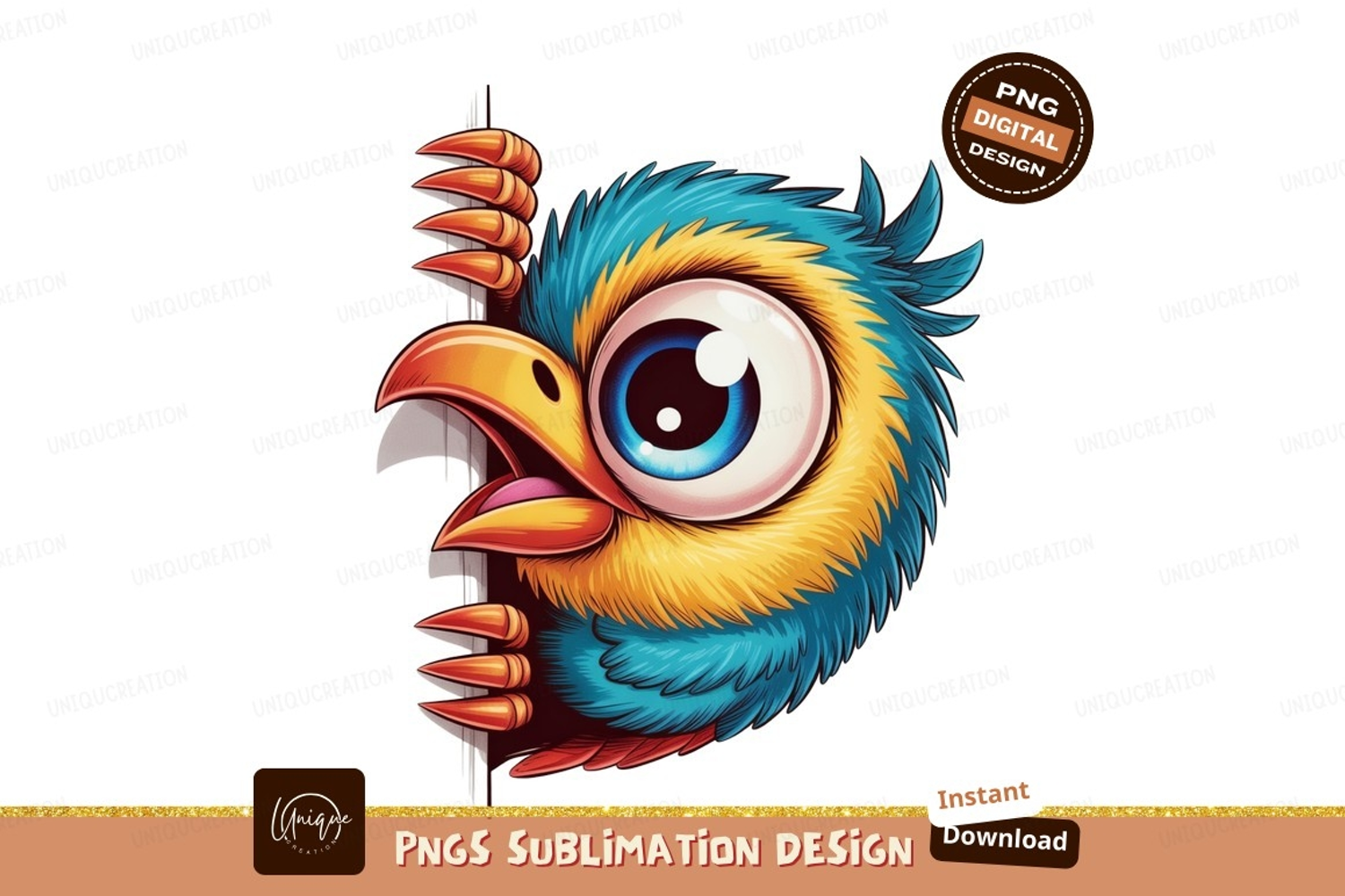 Cartoon Cute Colorful Blue Yellow Hair Bird Kitten Festive Peeking