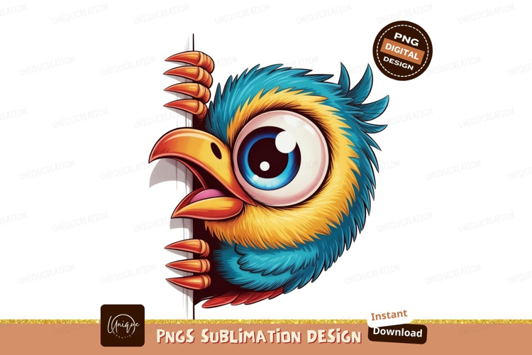 Cartoon bird peeking from behind cute colorful example image 1