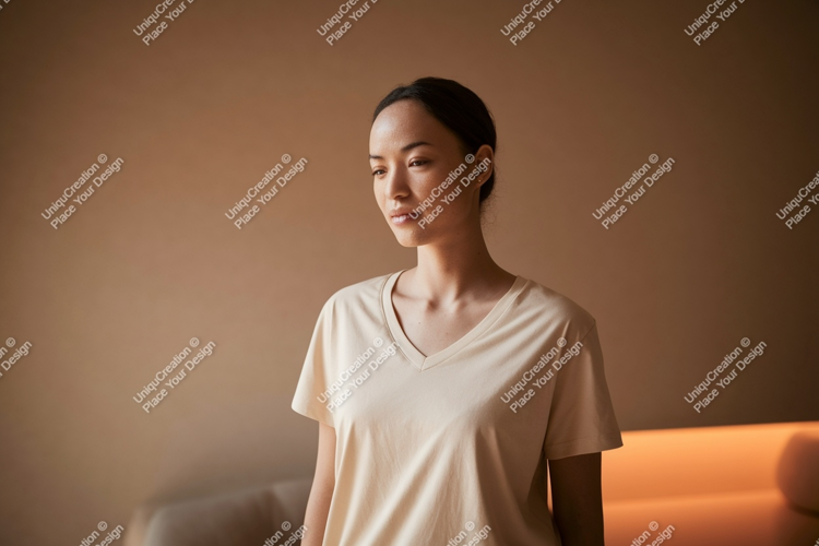 Fashion Shirt Clothing Casual Mockup Apparel Woman Portrait T Vneck