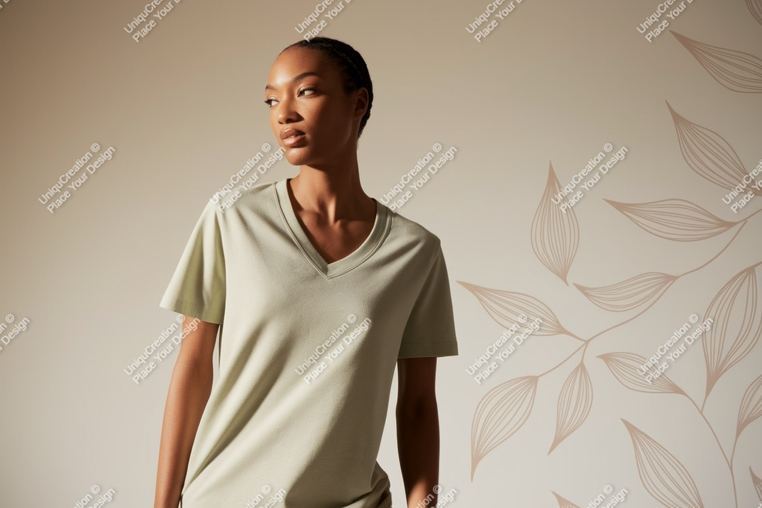 Similar Design Products to Woman wearing v-neck t-shirt green light