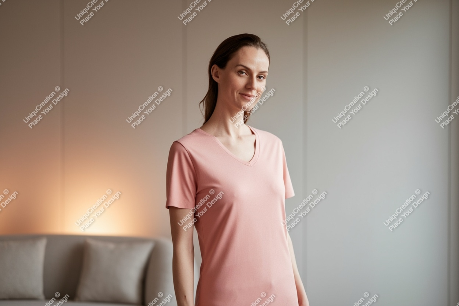 Fashion T-shirt Pink Clothing Casual Mockup Apparel Woman Comfortable V-neck