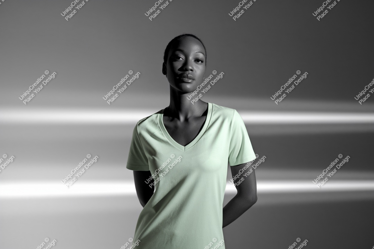 Similar Design Products to Woman wearing light green v-neck t-shirt image