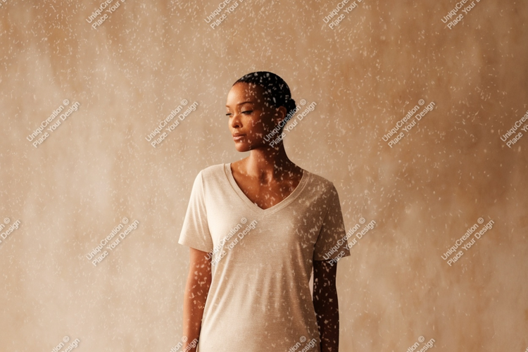 Light Fashion T-shirt Clothing Casual Mockup Apparel Woman Neutral V-neck