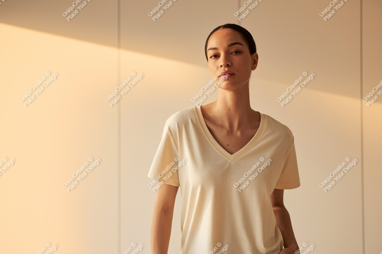 Fashion T-shirt Clothing Casual Mockup Apparel Woman Studio Cream V-neck