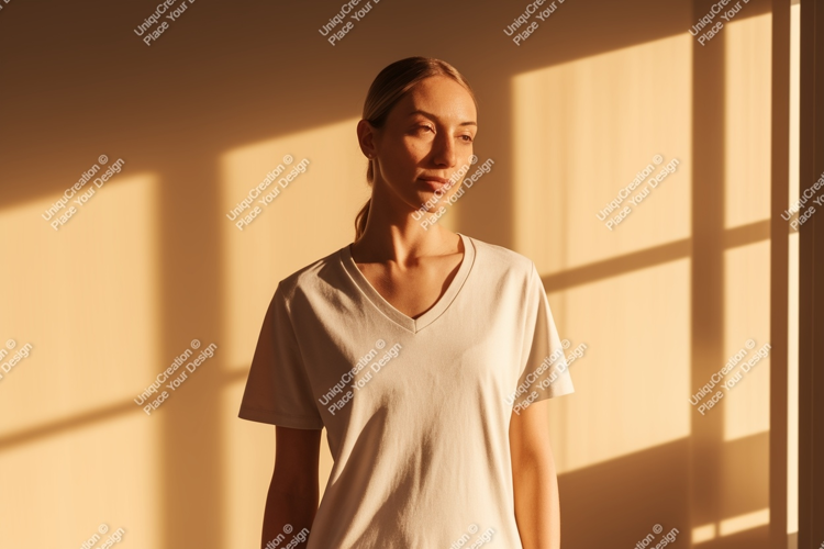 Similar Design Products to Woman wearing plain v-neck t-shirt light
