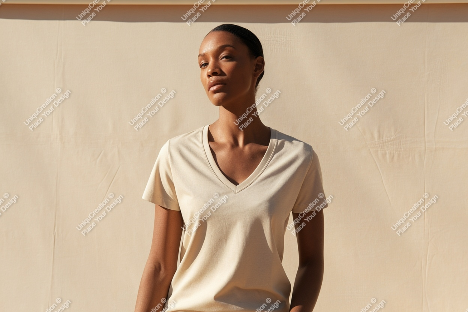 Similar Design Products to Woman wearing a light colored v-neck t-shirt
