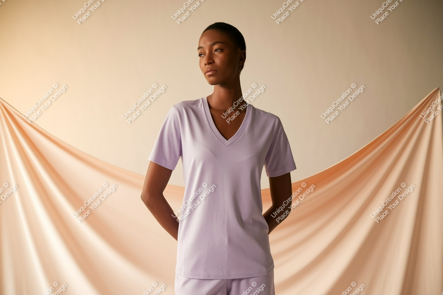 Fashion Shirt Clothing Mockup Apparel Woman Lavender Studio Peach Vneck