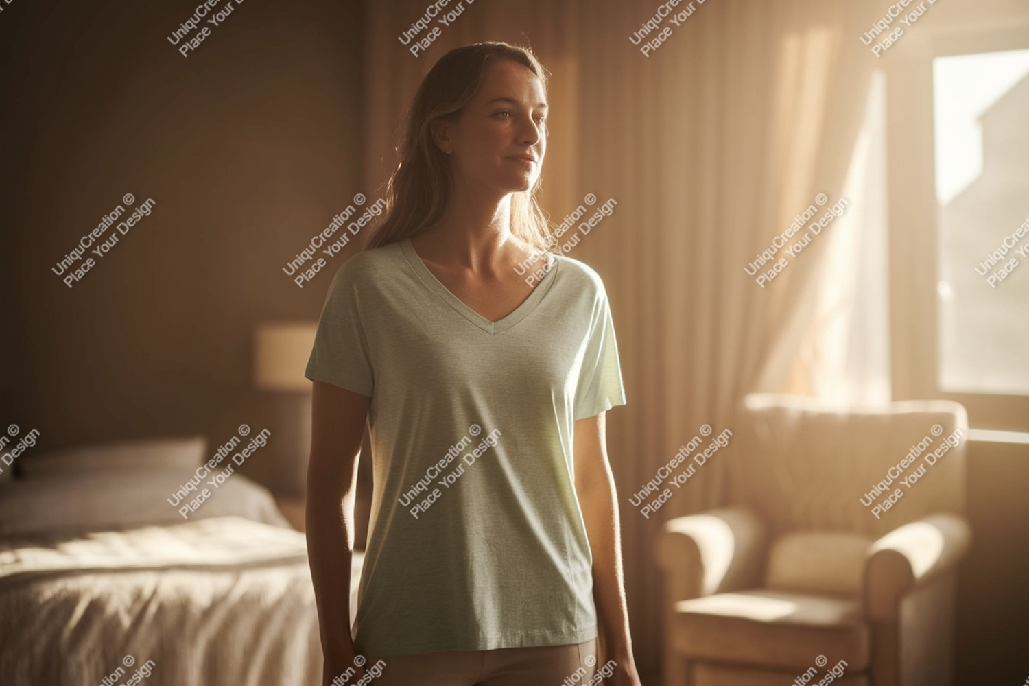 Light T-shirt Clothing Casual Mockup Apparel Woman Indoor Comfortable V-neck