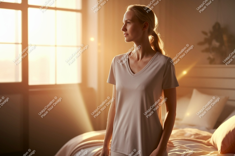 Light Shirt Woman Golden T Window Sunlight Hour Bedroom Indoors