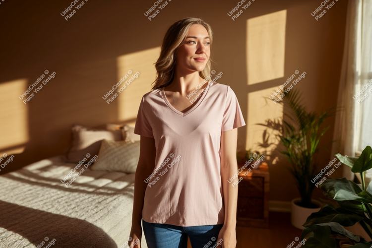 Similar Design Products to Woman wearing pink v-neck t-shirt casual