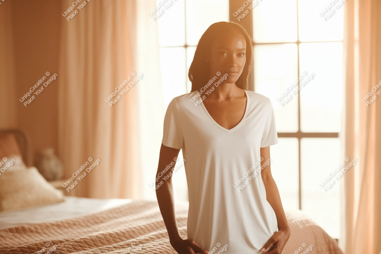 Similar Design Products to Woman wearing white v-neck t-shirt casual