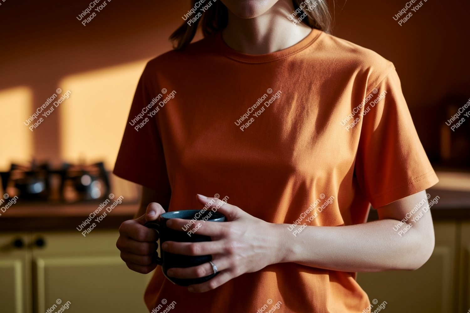 Shirt Clothing Casual Mockup Apparel Orange Person Holding Mug T