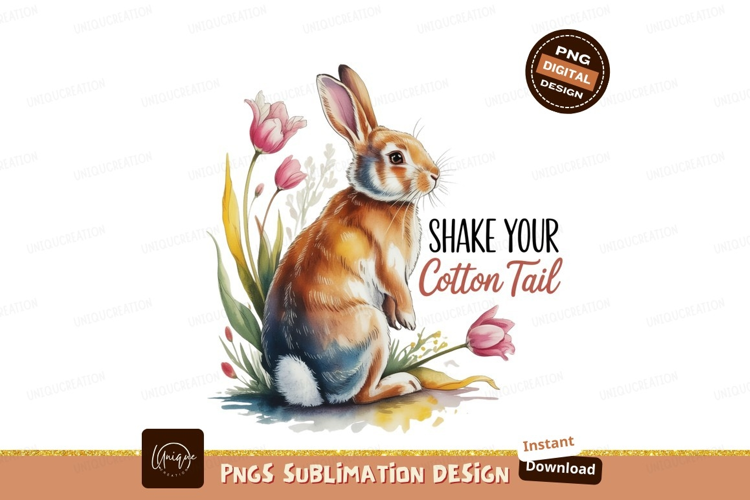 Rabbit Floral Watercolor Art bunny flowers example image 1