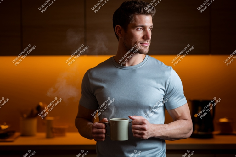 Man Casual Drink Warm Kitchen Beverage Holding Steam Mug Indoor