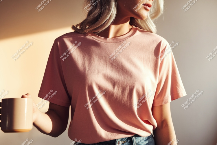 Fashion Shirt Pink Clothing Casual Apparel Woman Holding Mug T