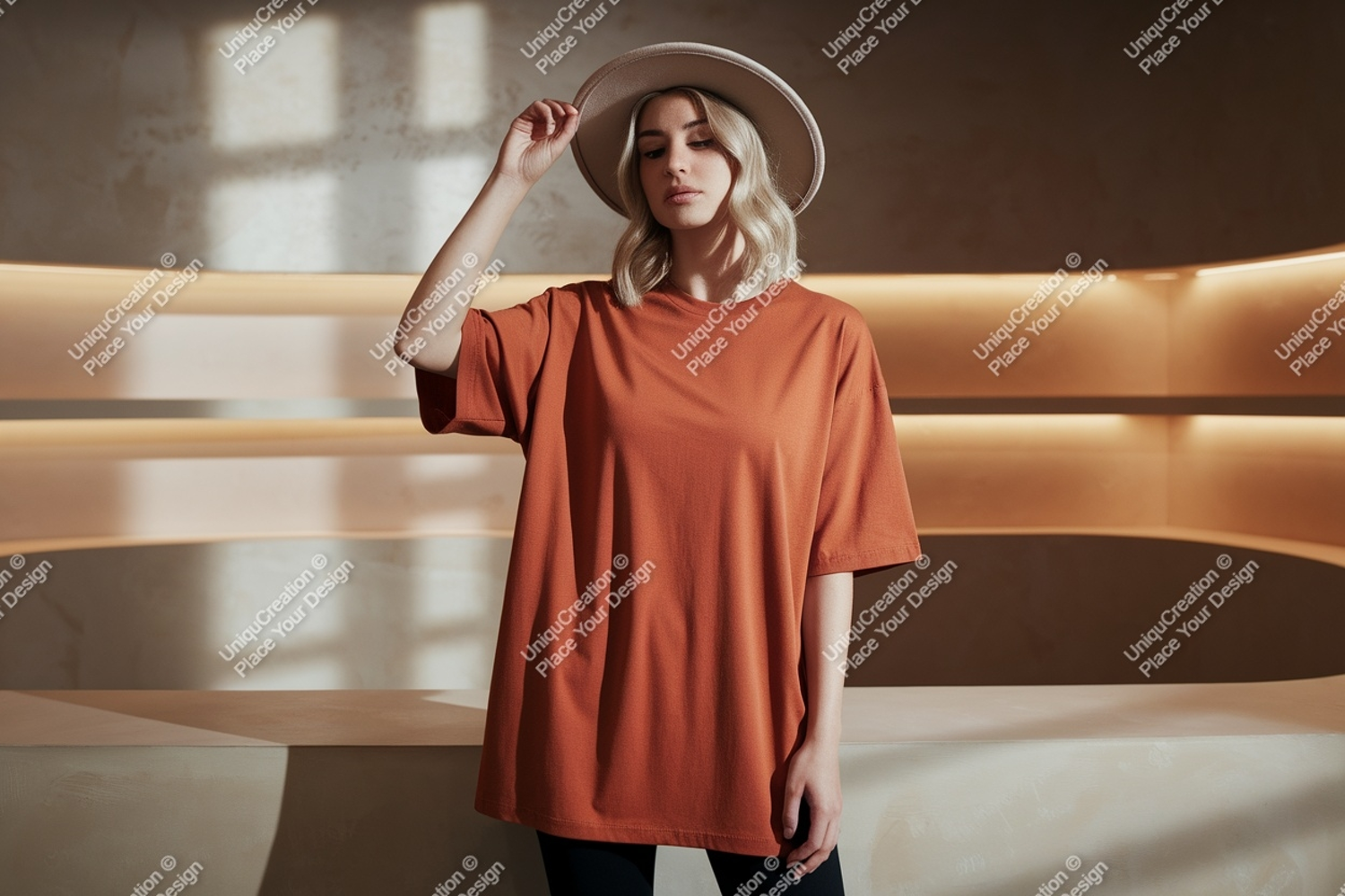Fashion Style Shirt Clothing Casual Mockup Woman Hat T Terracotta