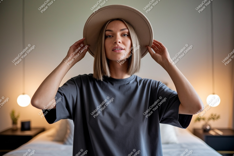 Modern Fashion Shirt Casual Woman Hat Grey T Indoor Bedroom