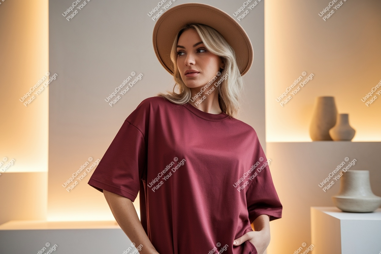Fashion Style Shirt Clothing Apparel Woman Studio Hat T Maroon