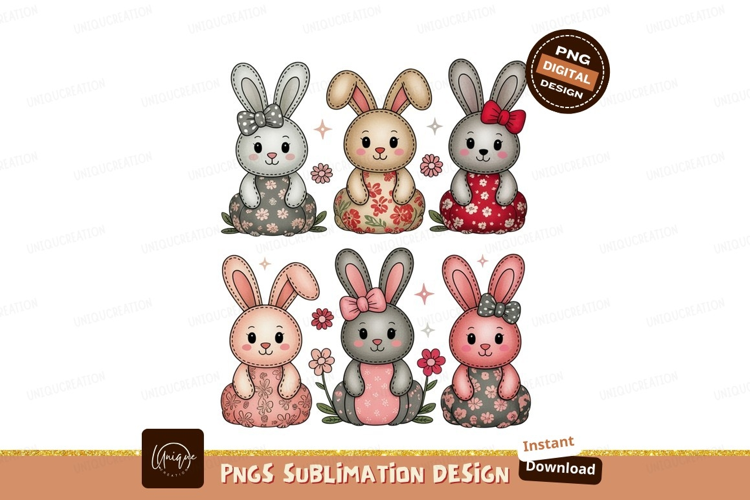 Similar Design Products to Six cute plush bunnies with floral dresses image