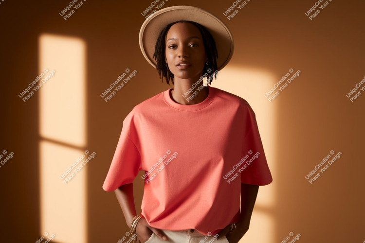 Fashion Shirt Casual Mockup Woman Studio Hat Coral Portrait T