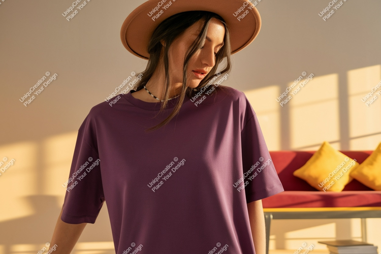 Fashion Shirt Clothing Mockup Apparel Woman Purple Brown Hat T