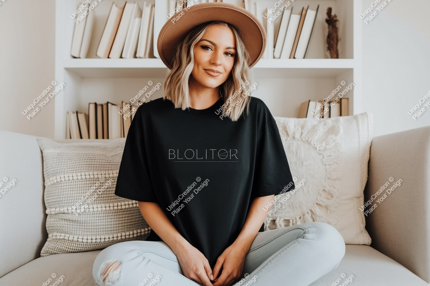 Fashion Black Shirt Clothing Casual Mockup Apparel Woman Model T