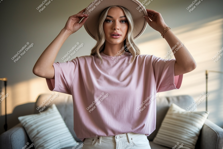 Fashion Style Shirt Pink Clothing Mockup Apparel Woman Hat T