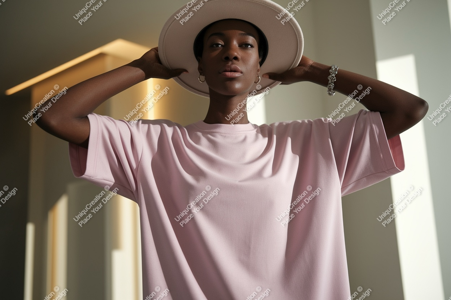 Fashion Style Shirt Pink Clothing Mockup Woman Hat Portrait T